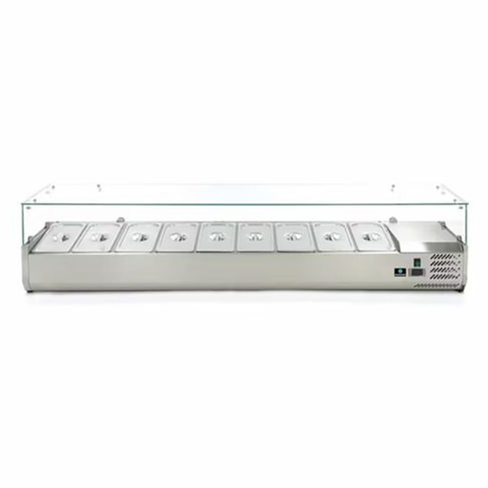2000x395x435мм, 220В, 9xGN1/3, +2…+8C, макс. глубина гастроемкостей 150мм, гастроемкости в комплект не входят