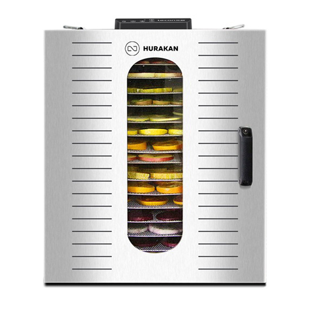 520*510*670мм, 21,4кг, 220В,1кВт, 2 вентилятора, 16 уровней, 16 решеток в комплекте,размер решеток 490*370мм, расстояние между решетками 35мм, температура 30-90C, шаг 5C, таймер от 30мин до 24ч, материал корпуса и решеток нерж. сталь, сенсорное управление