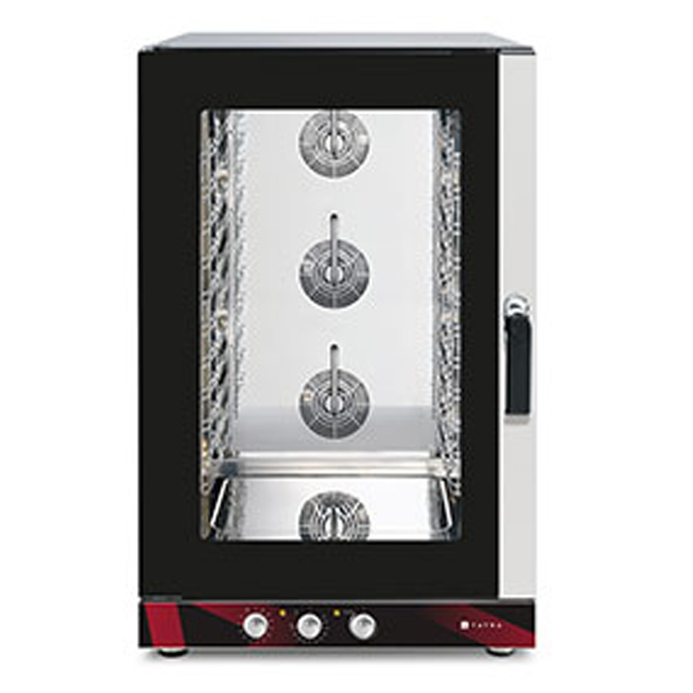 817х825х1317 мм, 400В, 15,8 кВт, 12 уровней GN1/1- 600х400, электромеханическая п/у, инжекторное пароувлажнение, макс. температура 260С, 3 вентилятора, реверс, 1 скорость вращения вентиляторов, таймер