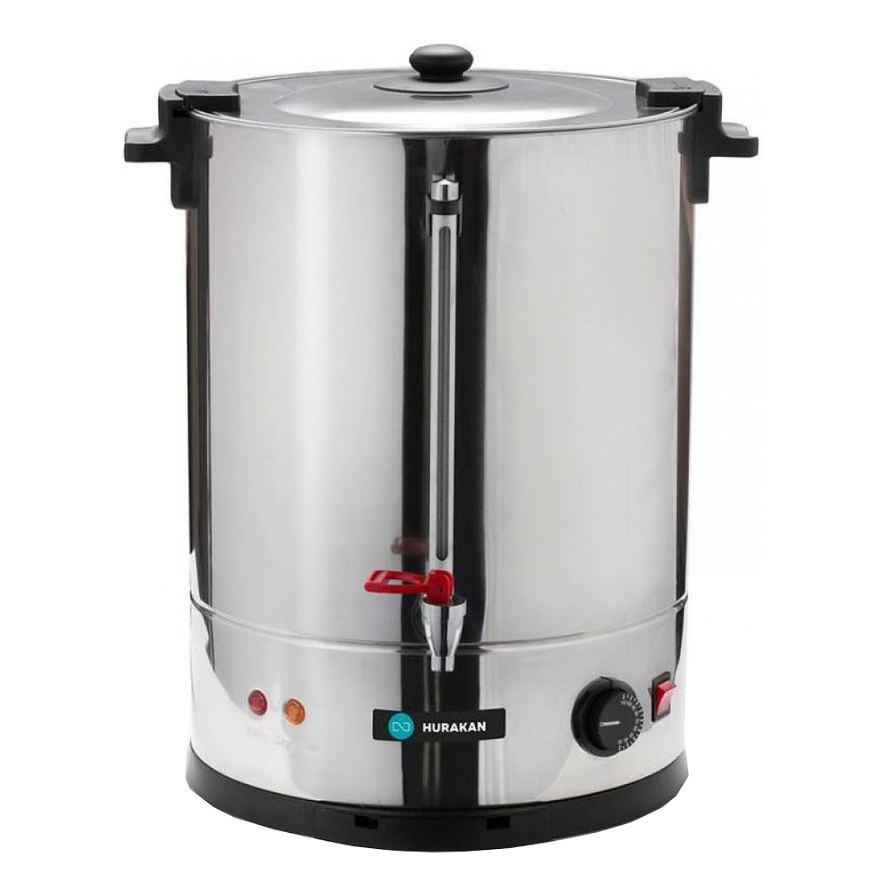 диаметр — 385мм, высота — 485мм, 2,5кВт, 220В, 34л, двойные стенки, закрытый тэн с возможностью замены, материал корпуса: нержавеющая сталь, материал крана — медь, тип подачи воды: заливной, индикаторы нагрева, каплесборник